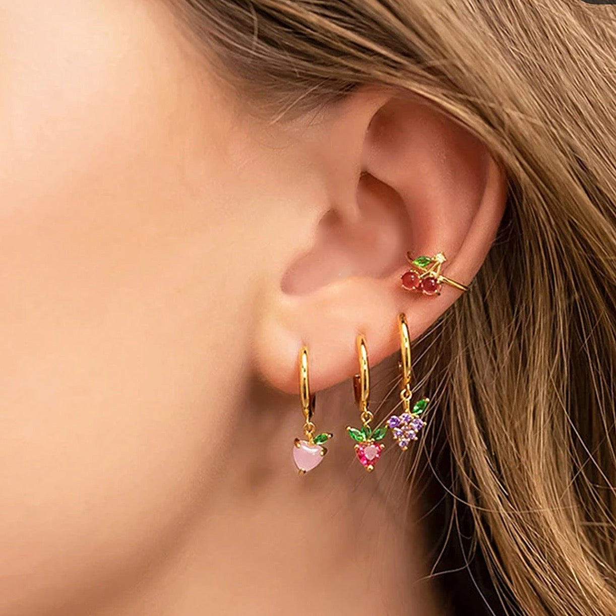 Discover our delightful mix of fruity jewels. High quality, vibrant cubic zirconia earrings in both silver and gold.