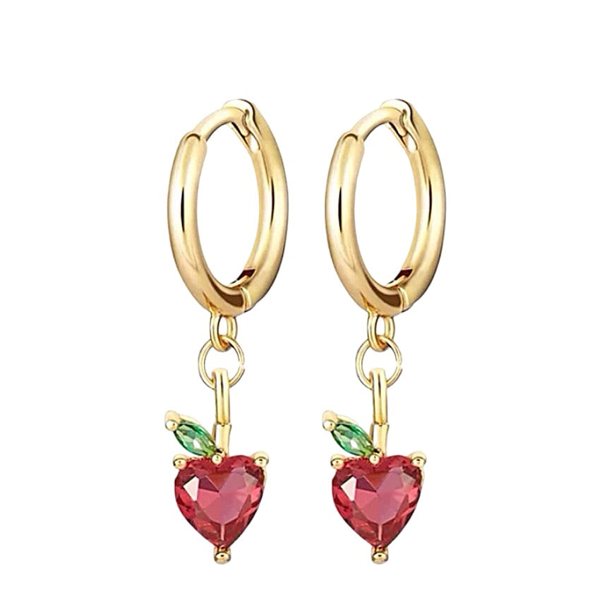 Indulge in luxury with our gold APPLE earrings. Featuring a dazzling Cubic Zirconia gemstone, these earrings will add a touch of elegance to any outfit. Perfect for channeling those summer vibes, these earrings are a must-have for any fashionista. Upgrade your jewellery collection with APPLE.