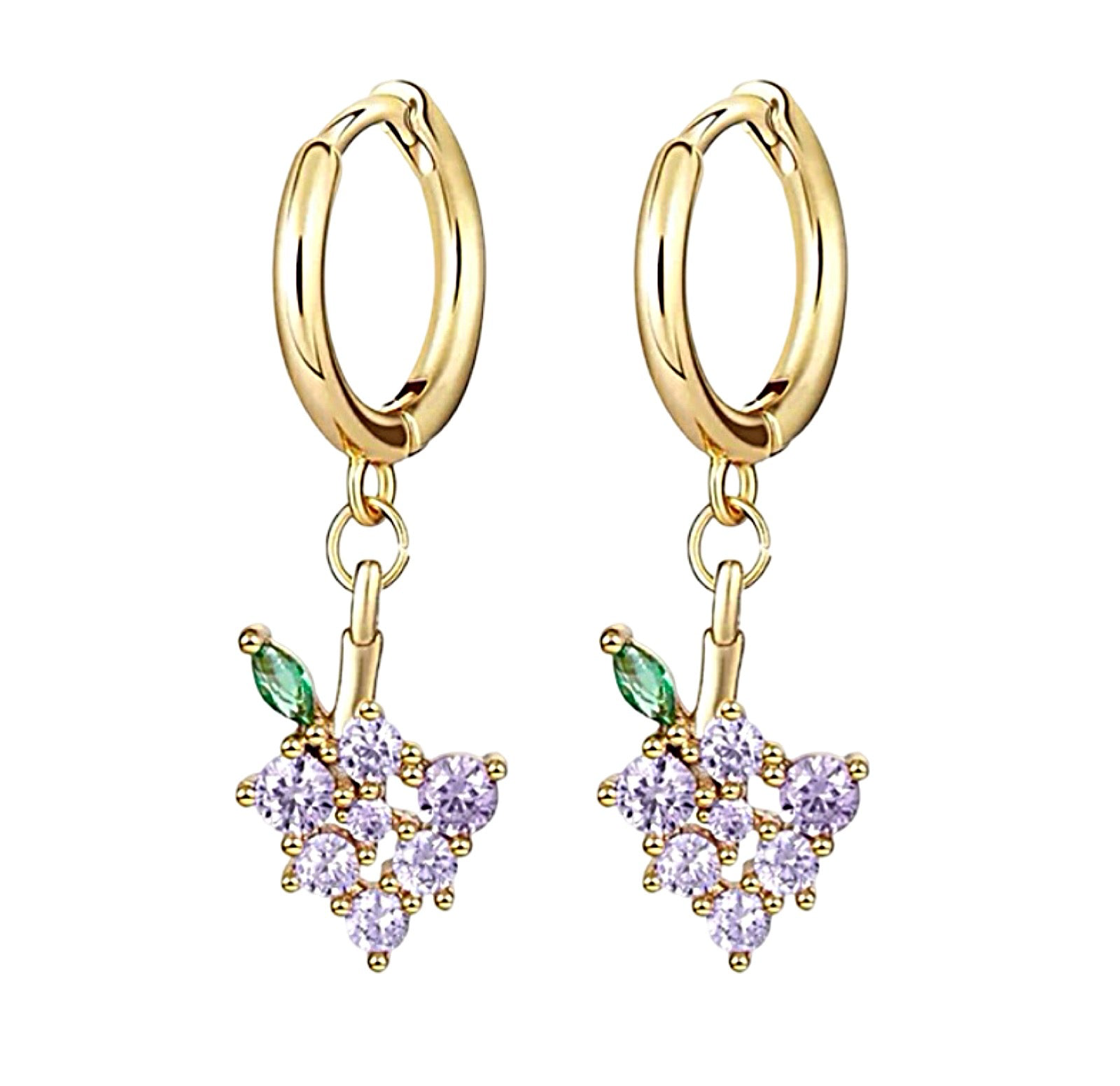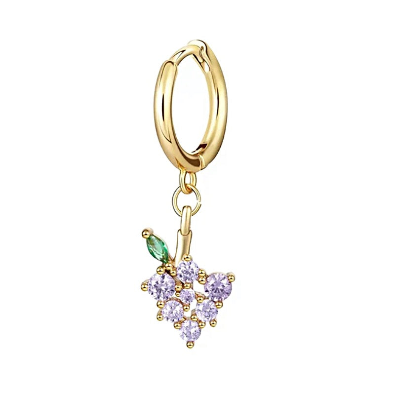 Designed for everyday summer fun. our GRAPE huggie stacking hoops add a touch of sparkle to any outfit. Crafted in gold with cubic zirconias shaped like juicy grapes, these hoops are both sophisticated and playful. Elevate your style with a touch of fruity charm.