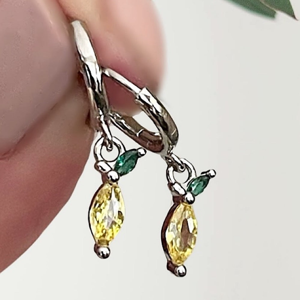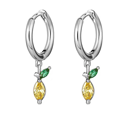 Experience the fun, summer vibes with our luxury silver huggie earrings featuring a sparkling cubic zirconia lemon charm. Stack them up for a stylish and trendy look.