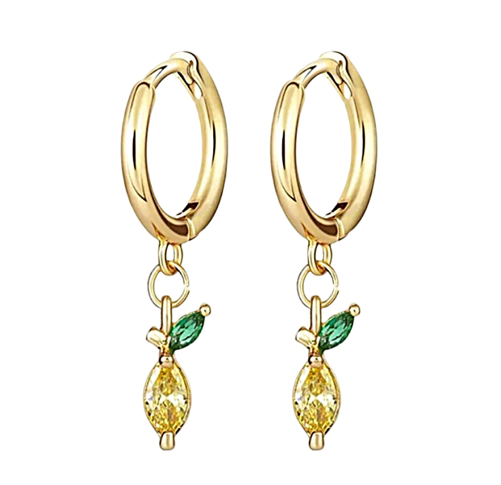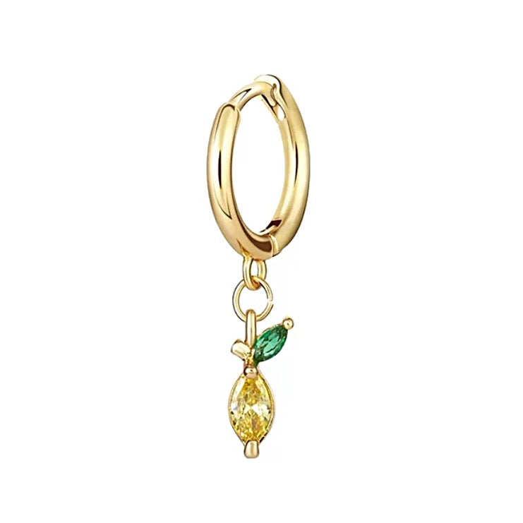 Experience the fun, summer vibes with our luxury gold huggie earrings featuring a sparkling cubic zirconia lemon charm. Stack them up for a stylish and trendy look.