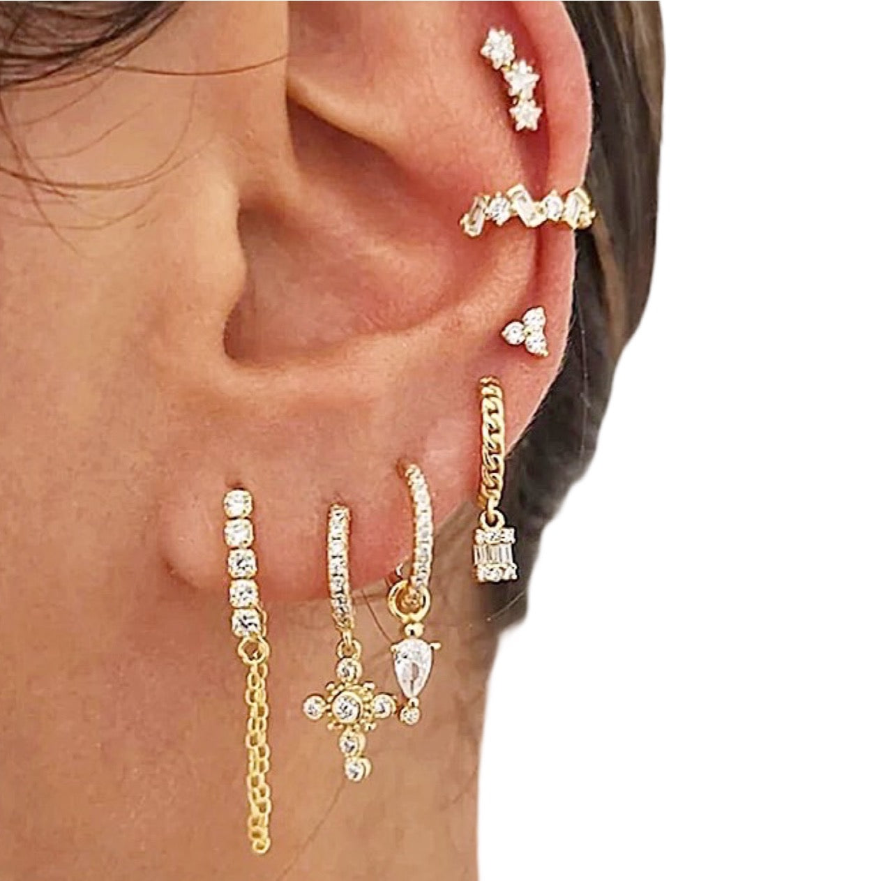 Indulge in the ultimate luxury with our Summer Luxe Collection. Elevate any summer look with these stunning gold earrings, featuring diamond cubic zirconias carefully set in stainless steel and plated in gold. Perfect for weddings and cocktail parties, these earrings exude sophistication and style. Upgrade your summer wardrobe now. Select your styles or the whole set allowing you to mix and match.